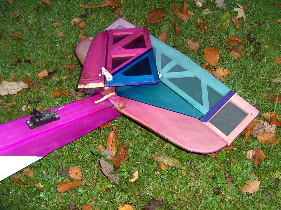 Maybe you noticed, this is the model which got caught in the top of a tree,(see 'our strip' ). After energetic retrieval using a very long pole and lots of rope, one Sunday, it had to be partially rebuilt.